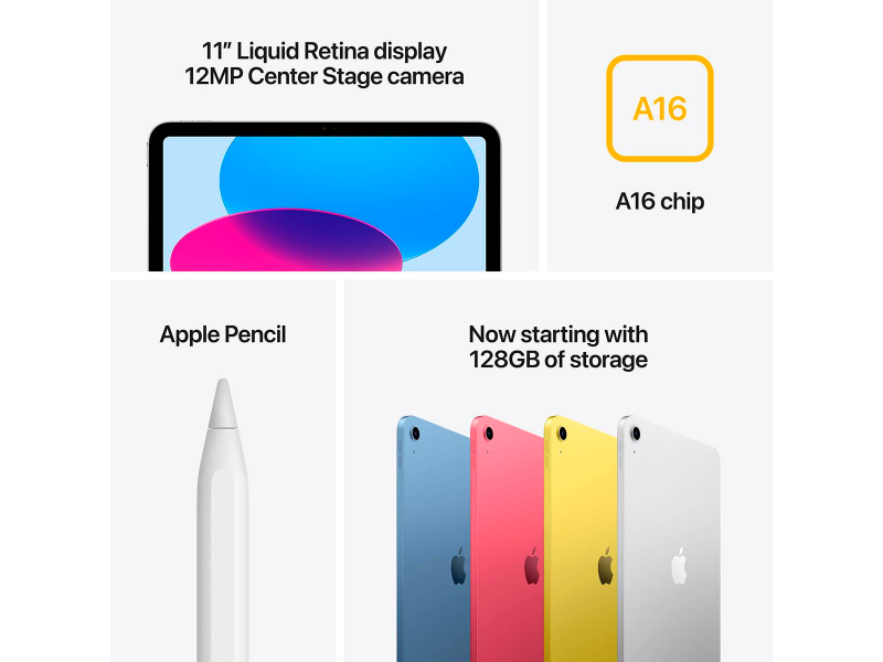 - DESEMPENHO E ARMAZENAMENTO – O processador A16 oferece um desempenho ultrarrápido para as suas atividades preferidas. E a bateria para todo o dia torna o iPad perfeito para jogos envolventes ou edição de fotografias e vídeos.(3) As opções de armazenamento começam em 128 GB e vão até 512 GB.(4)