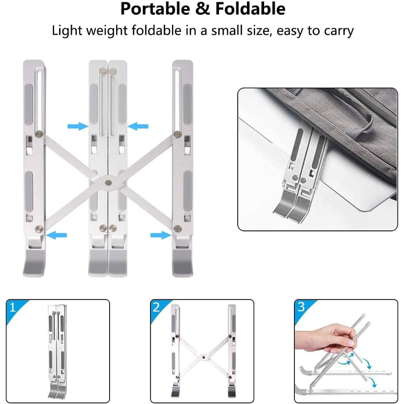 O suporte está equipado com elementos de proteção antiderrapantes contra danos ao laptop.