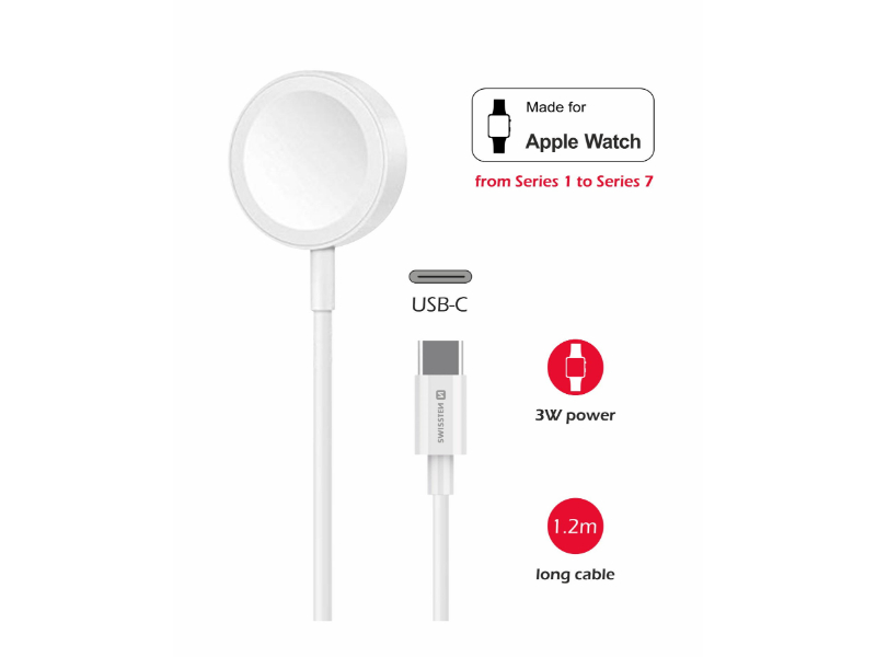 • Cabo de carregamento USB-C para conector Magnético de Swissten para Apple Watch Série 1, 2, 3, 4, 5, 6, SE, 7.
