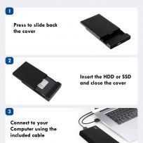 A instalação de um disco rígido ou SSD é muito fácil, graças ao sistema de montagem sem parafusos da caixa EW7044. Com apenas 3 passos poderá transportar consigo os seus ficheiros favoritos. Primeiro, abra a caixa. Em seguida, ligue o disco rígido ao conector SATA e, por fim, feche a caixa. A caixa EW7044, é muito prática e está preparada para ligar ao seu computador pessoal ou portátil! O cabo USB fornecido fornece a energia necessária para o seu disco rígido através do seu computador.