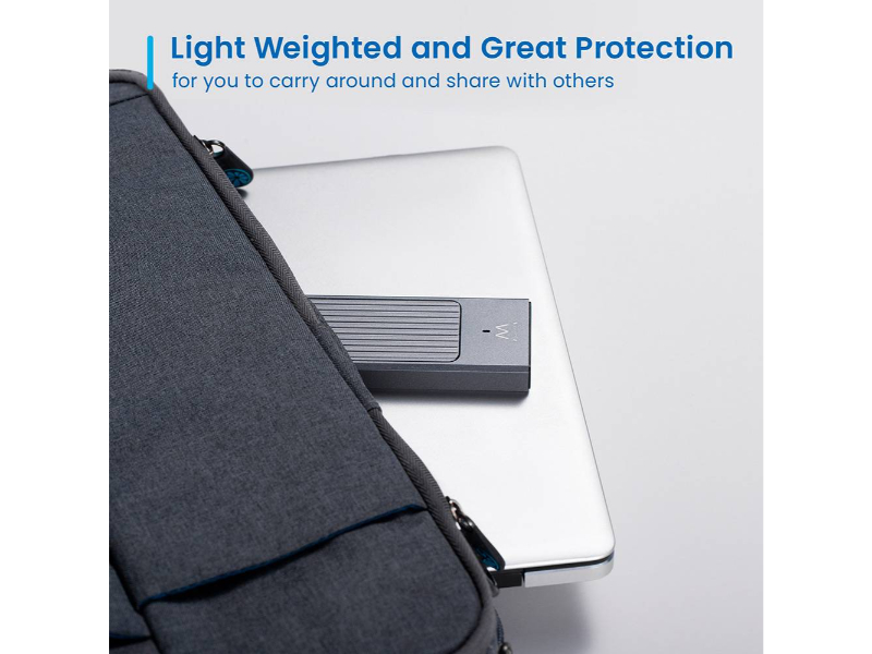 O seu SSD M.2 NVMe/PCIe estará protegido dentro da caixa resistente de alumínio EW7022. A caixa é leve e com tamanho de bolso para que possa transportá-la facilmente.