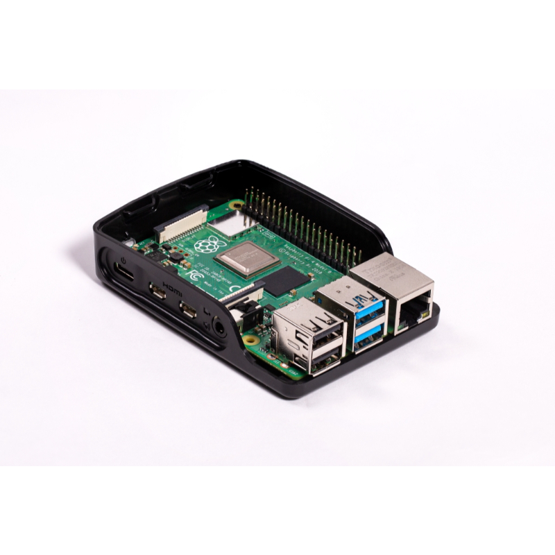 A caixa para Raspberry Pi 4 é feita de plástico ABS de cor preta, feito para proteger e acomodar o Raspberry Pi 4 de forma simples. A caixa oferece um design minimalista e funcional, com aberturas estrategicamente posicionadas para permitir o acesso aos principais componentes do Raspberry Pi 4, como as portas USB, HDMI, Ethernet, entre outros.