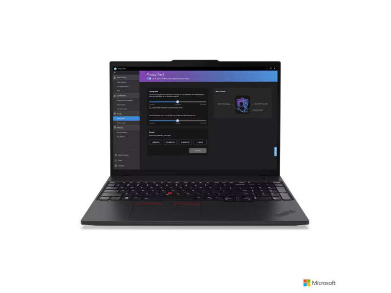 O T16 Gen 3 é mais acessível para as pessoas com deficiência visual, não só devido aos marcadores táteis do teclado, mas pelo indicador LED em Braille para uma localização fácil da porta de alimentação. A barra de comunicações aloja os microfones e a câmara/obturador de privacidade, enquanto a moldura fina proporciona uma relação de ecrã/corpo impressionante e esteticamente agradável e um painel deslumbrante.