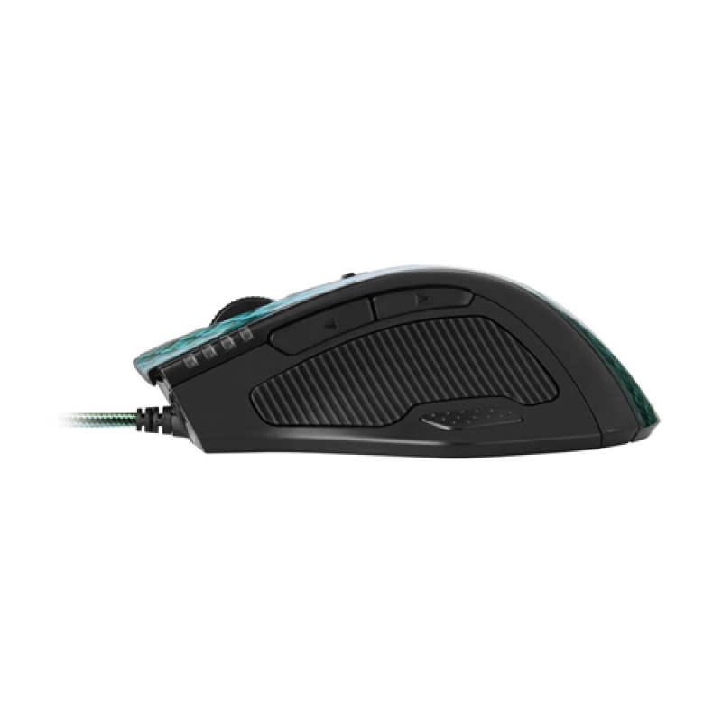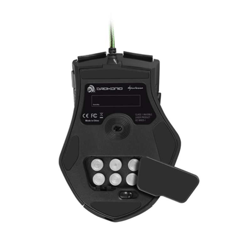 Um sensor laser Avago ADSN-9500 funciona sob a escama cinza do dragão, e a configuração de DPI do rato em uso é indicada por uma luz LED constantemente iluminada.