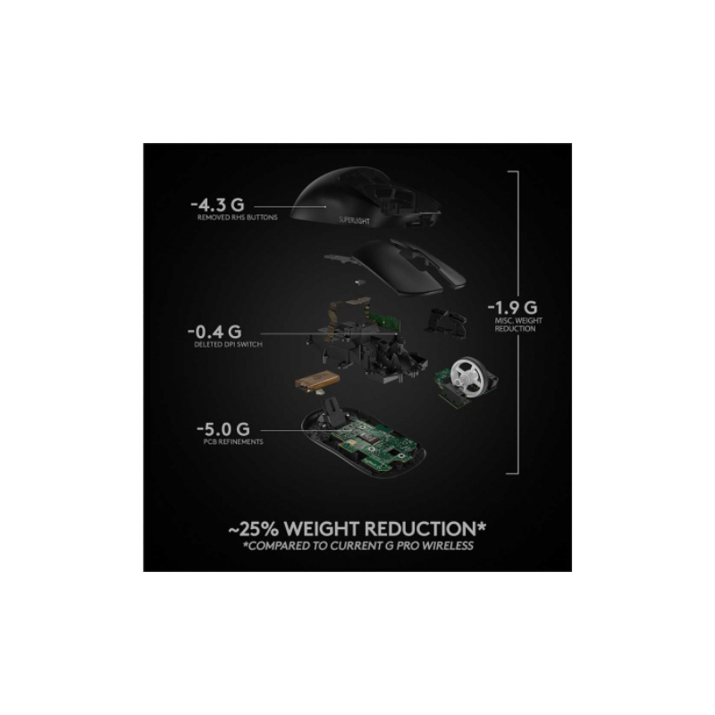 Como resultado da colaboração contínua da Logitech com os principais profissionais dos esports, o PRO X SUPERLIGHT foi projetado com um único objetivo – criar o rato para jogos sem fio PRO mais leve possível, mantendo a qualidade, integridade estrutural e padrões profissionais que a Logitech G Series oferece.
