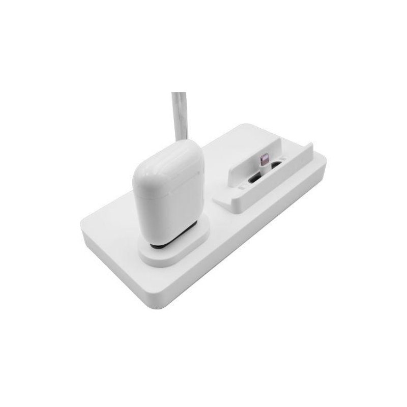 O Macally MWATCHSTAND3W é um suporte elegante e resistente, especialmente projetado para manter o seu Apple iPhone, Apple Watch, AirPods e cabos de carregamento juntos para ajudar a manter sua mesa / mesa de cabeceira limpa.