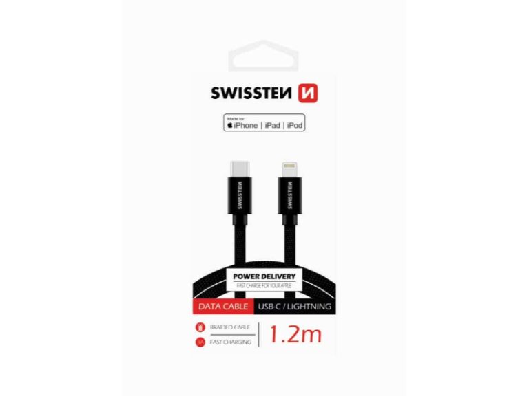 O cabo USB-C para Lightning da Swissten com Certificação MFI garante que os teus dispositivos estarão protegidos durante o carregamento, ao mesmo tempo que o cabo revestido acrescenta uma camada extra de durabilidade.